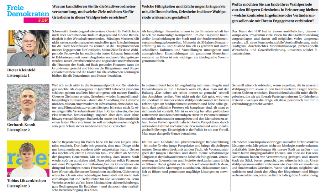Antwort der Presseanfragen. Die Kandidaten auf den Listenplätzen 1 bis 3